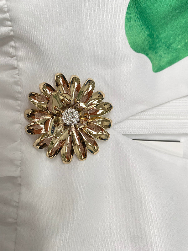 Feature Flower Print , Pleated