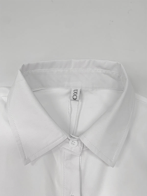 A-Line Loose Pleated Solid Color Split-Joint Lapel Maxi Dresses Shirt