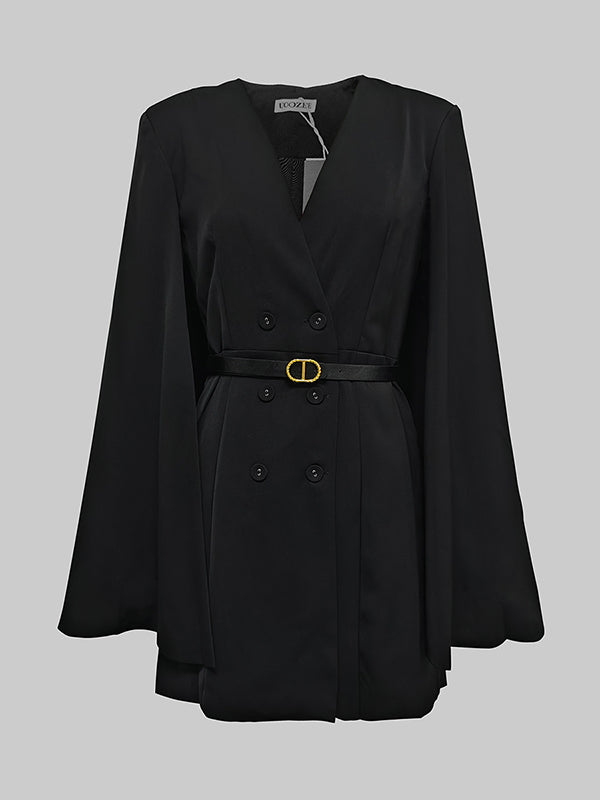 Cape Split-Joint Tied Waist V-Neck Mini Dresses