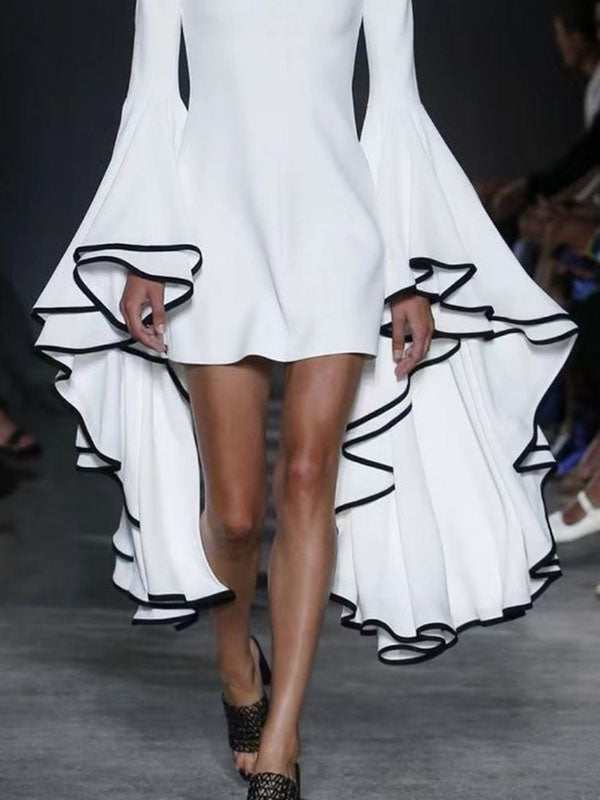 Flared Sleeves Long Sleeves Solid Color Stand Collar Mini Dresses