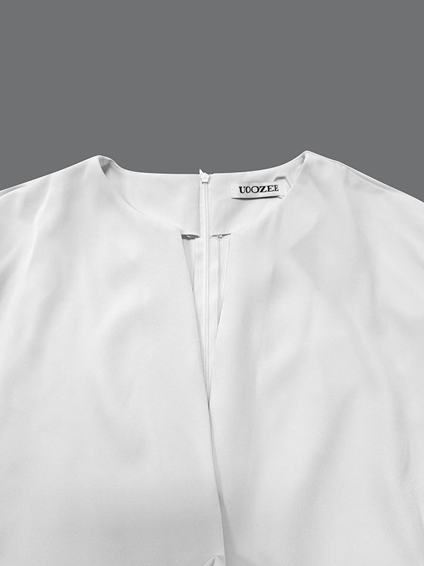 Half Sleeves Loose Belted Solid Color Deep V-Neck Maxi Dresses