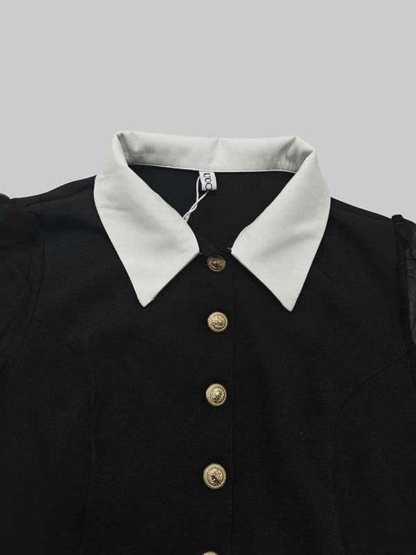 Long Sleeves Buttoned See-Through Solid Color Split-Side Lapel Maxi Dr